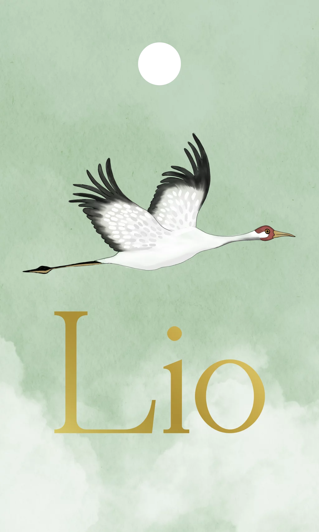 Label Kraanvogel Groene Achtergrond 30 x 50mm goudfolie