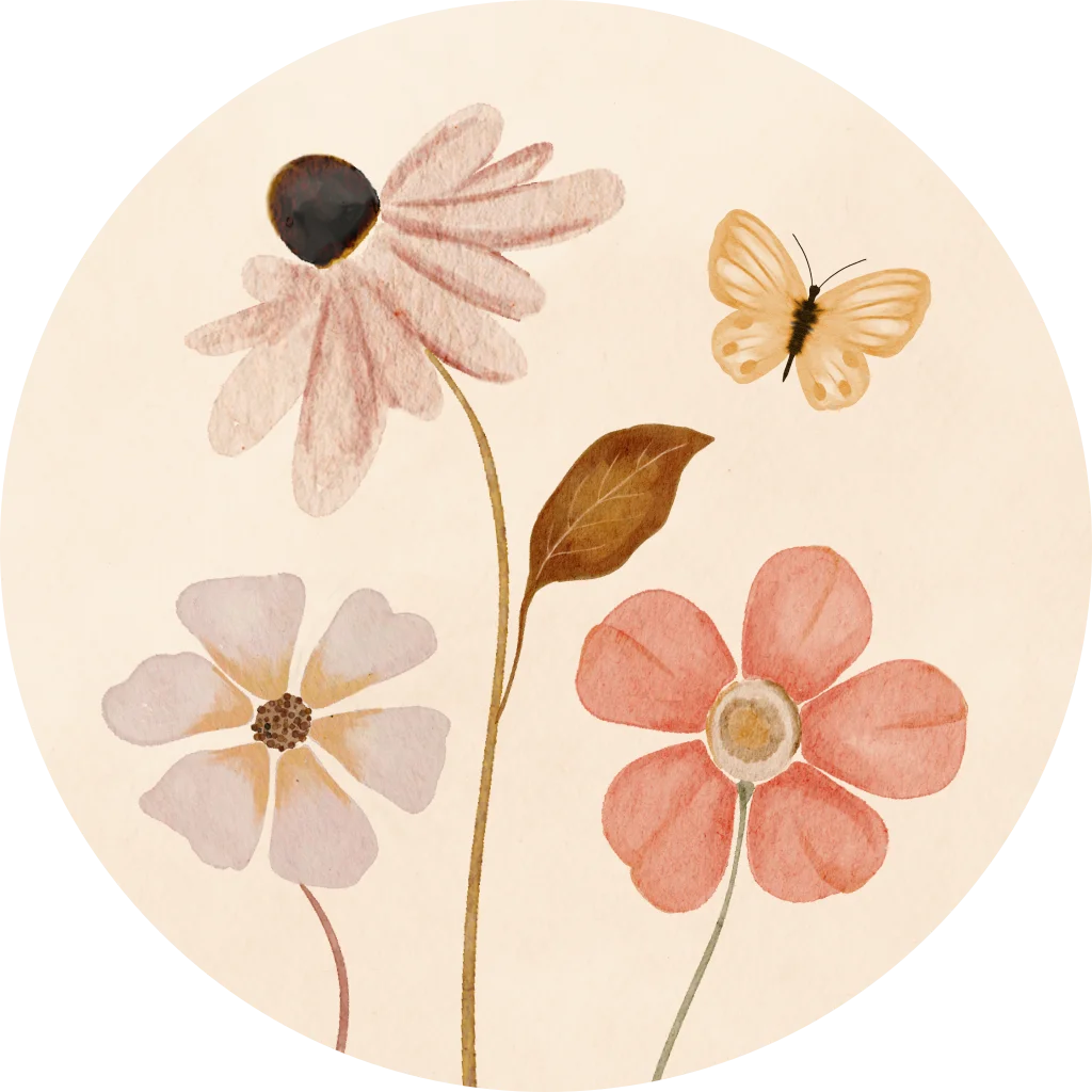 Sluitsticker met bloemetjes en vlindertje, perfect om je geboortekaartje mooi mee af te sluiten.