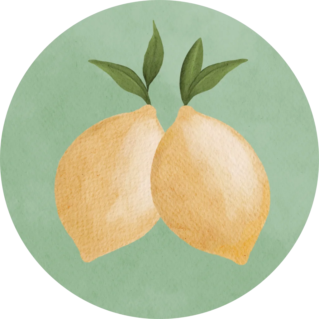 Sluitsticker met twee citroentjes op een groene achtergrond, perfect om je geboortekaartje mooi mee af te sluiten.