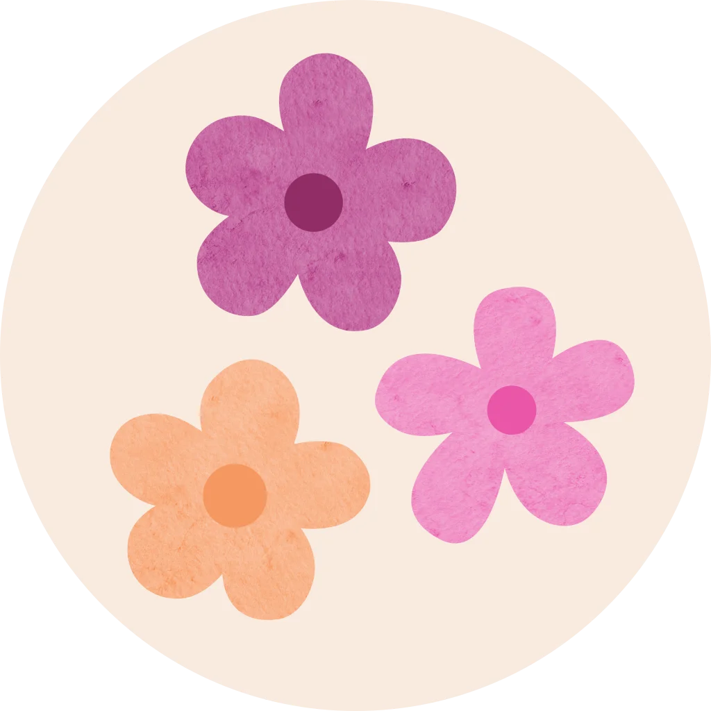 Sluitsticker met vrolijke gekleurde bloemetjes, perfect om je geboortekaartje mooi mee af te sluiten.