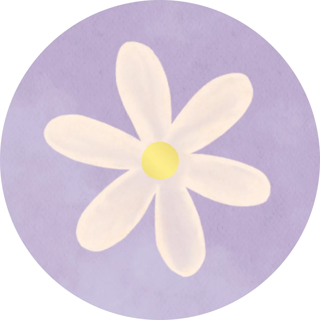 Lieve sluitsticker met madeliefje op lila achtergrond met gouden foliedruk, perfect om je geboortekaartje mooi mee af te sluiten.