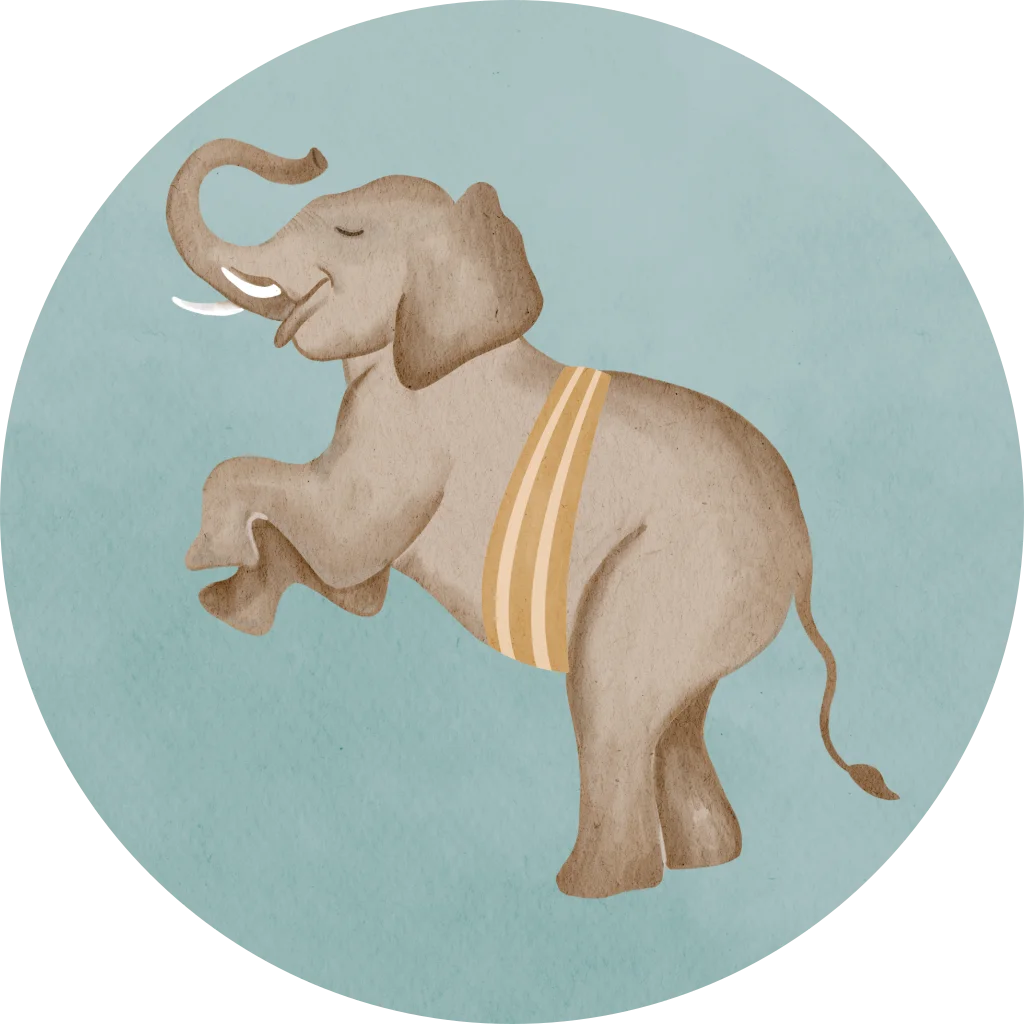 Mooie sluitsticker met olifantje op blauwe achtergrond, perfect om je geboortekaartje mooi mee af te sluiten.