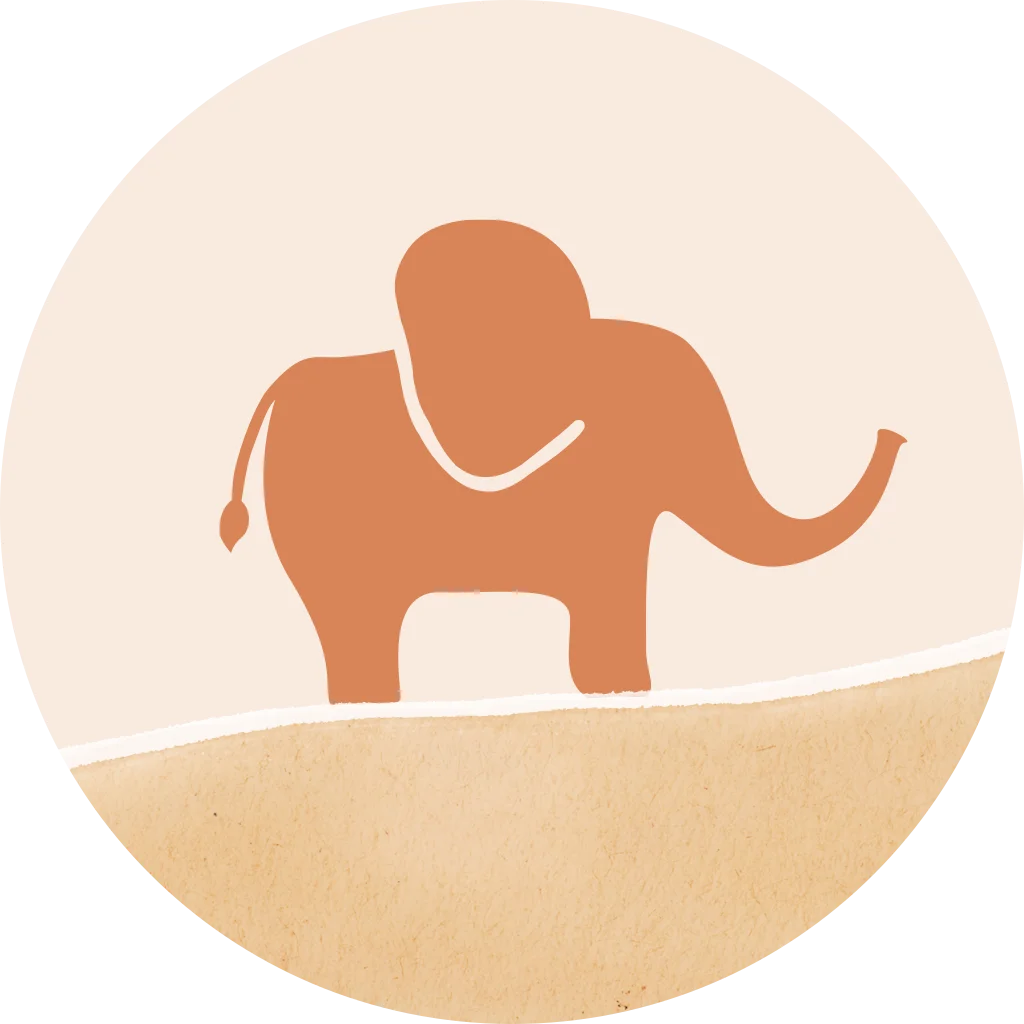 Sluitsticker met een terra olifantje op een landschap, perfect om je geboortekaartje mooi mee af te sluiten.