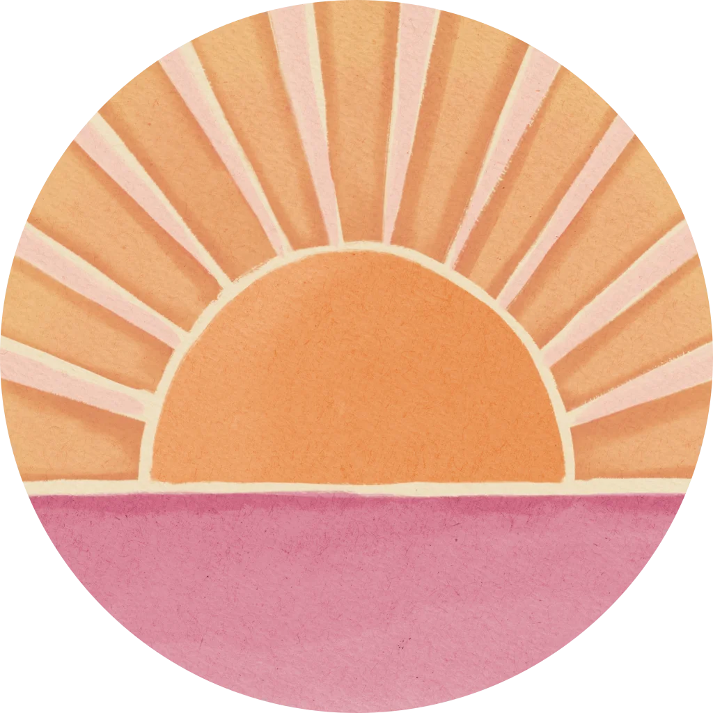 Sluitsticker zonnestralen in warme oranje en roze tinten, perfect om je geboortekaartje mooi mee af te sluiten.