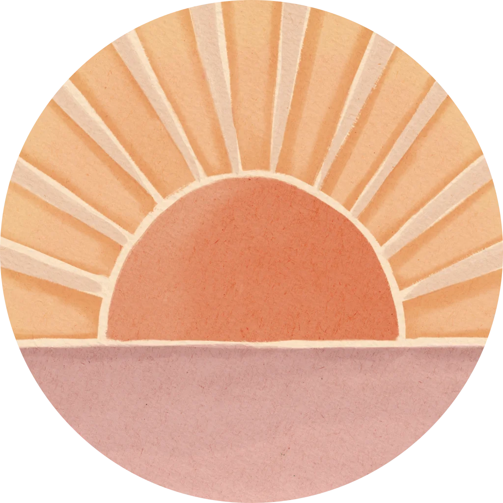 Sluitsticker zonnestralen in oranje en oudroze tinten, perfect om je geboortekaartje mooi mee af te sluiten.