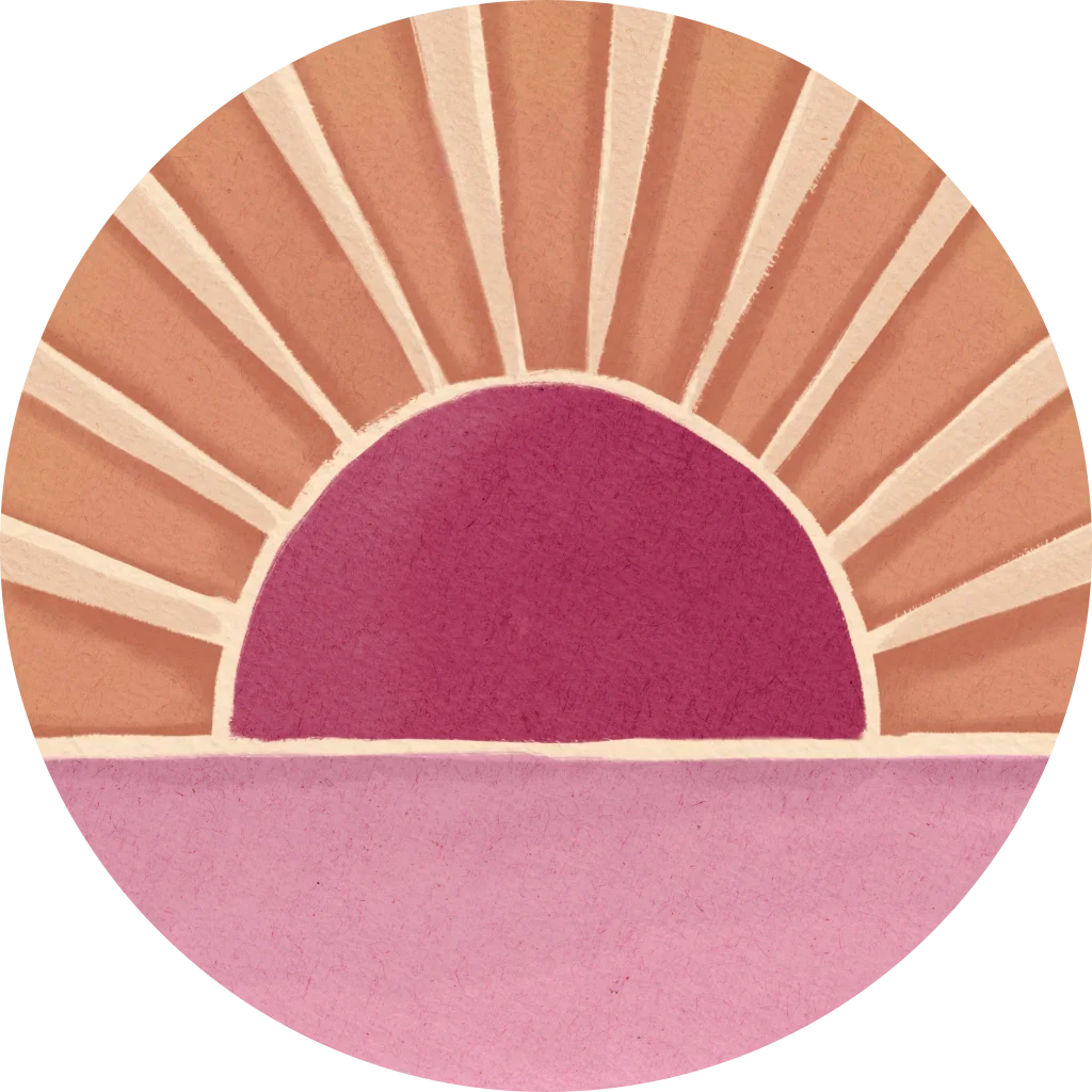Sluitsticker zonnestralen in warme terra en paars tinten, perfect om je geboortekaartje mooi mee af te sluiten.