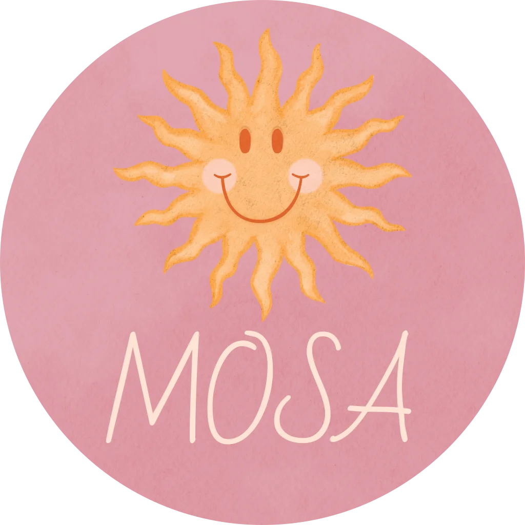 Vrolijke roze sticker van een zonnetje met smiley gezichtje en de naam van jullie kleintje. Perfect voor op doopsuiker, geboortebedankjes en traktaties.