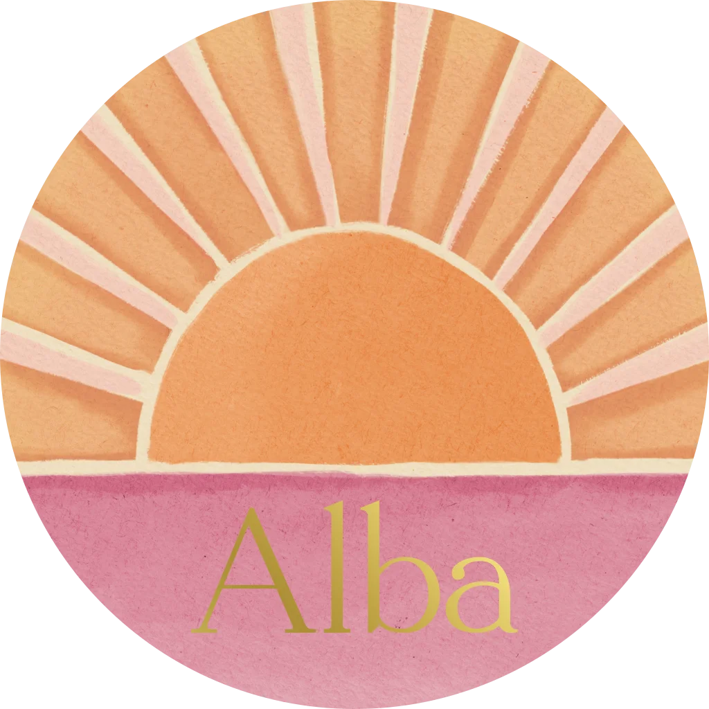 Sticker zonnestralen in warme oranje en roze tinten. Perfect om te gebruiken voor doopsuiker of geboortebedankjes.