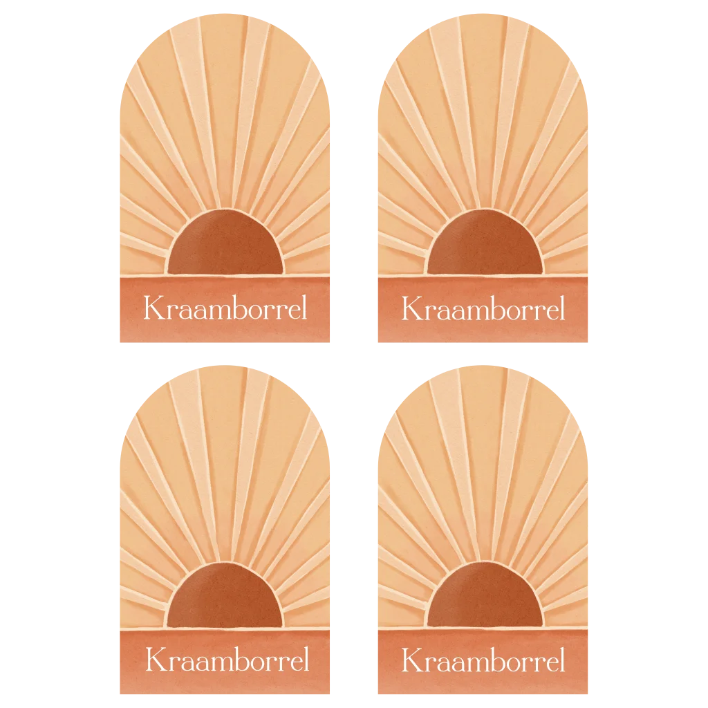 De kaartjes passen bij het geboortekaartje met de zonnestralen en heeft mooie warme terra tinten.