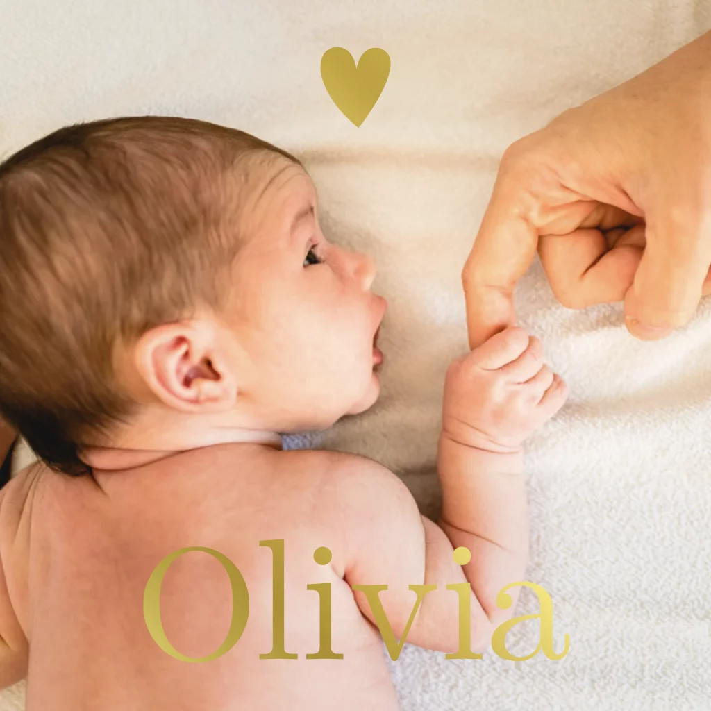 Maak jullie geboortekaartje extra bijzonder met een fotootje van jullie kleintje. De foliedruk op dit fotootje, maakt het kaartje extra speciaal. Je bevestigt het label aan het geboortekaartje met een paperclip.