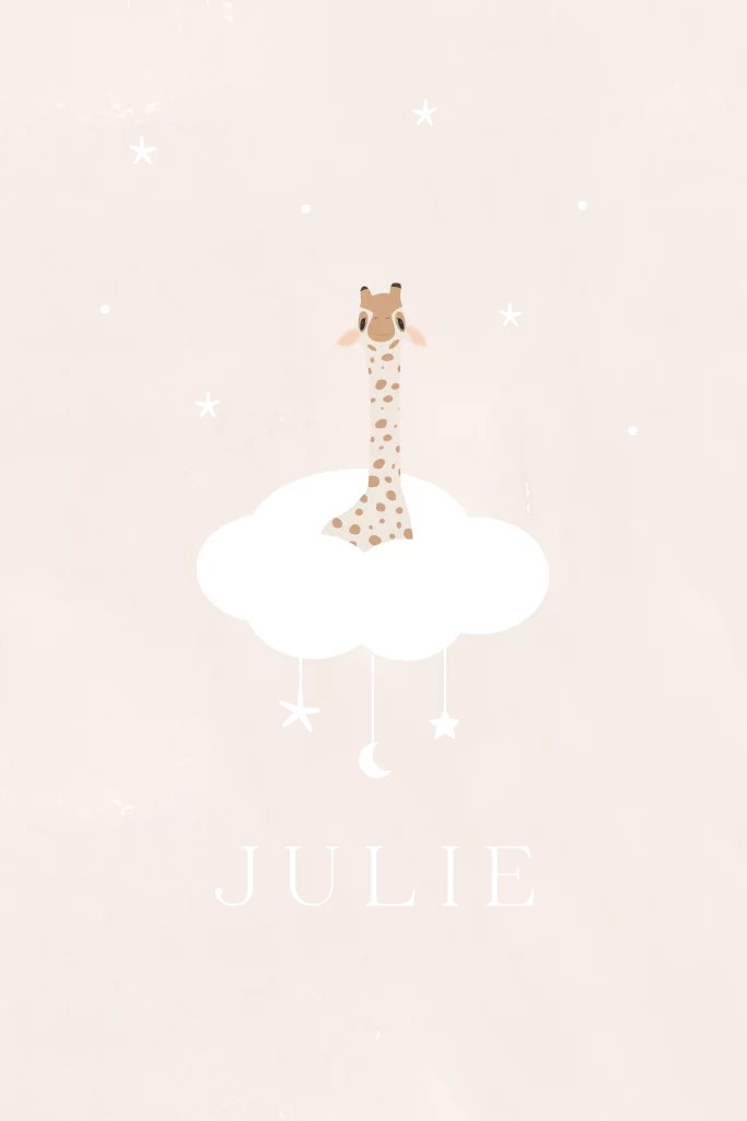 Geboortekaartje Giraffe Wolken Sterren Maantje Pastelkleur