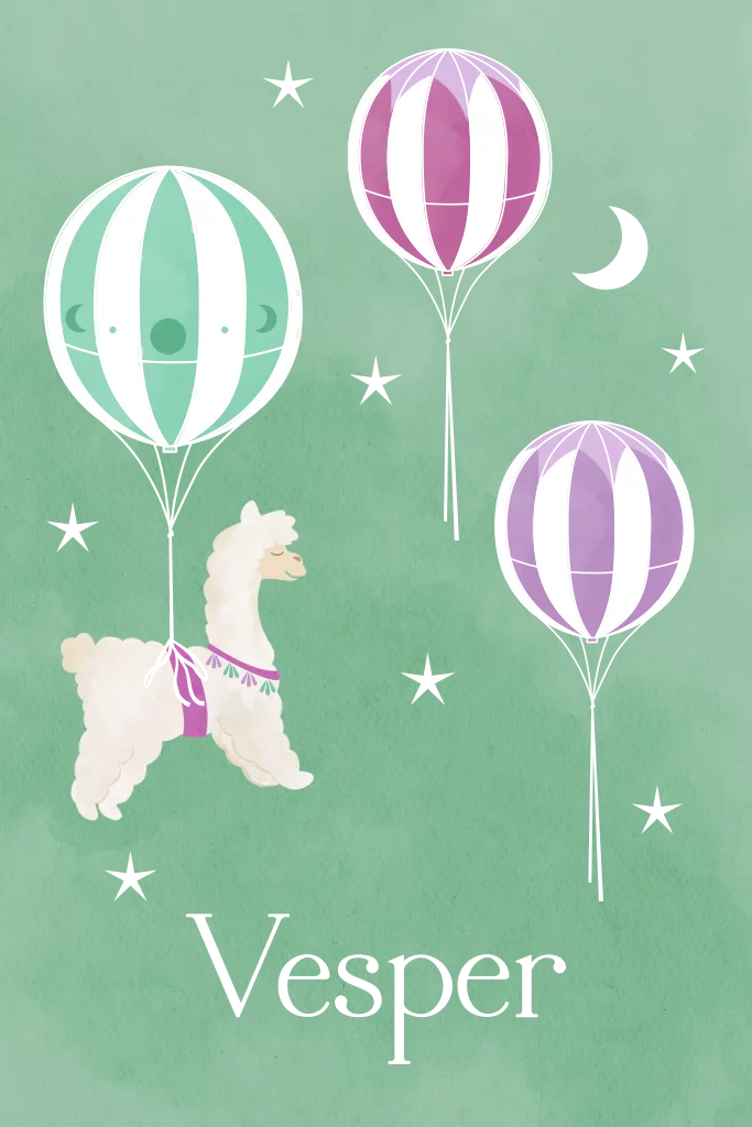 Geboortekaartje Lama Luchtballonnen Groen Lila