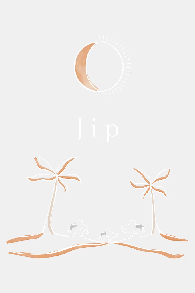 Geboortekaartje Lijnen Illustratie Olifantjes Palmbomen Maan in Zon