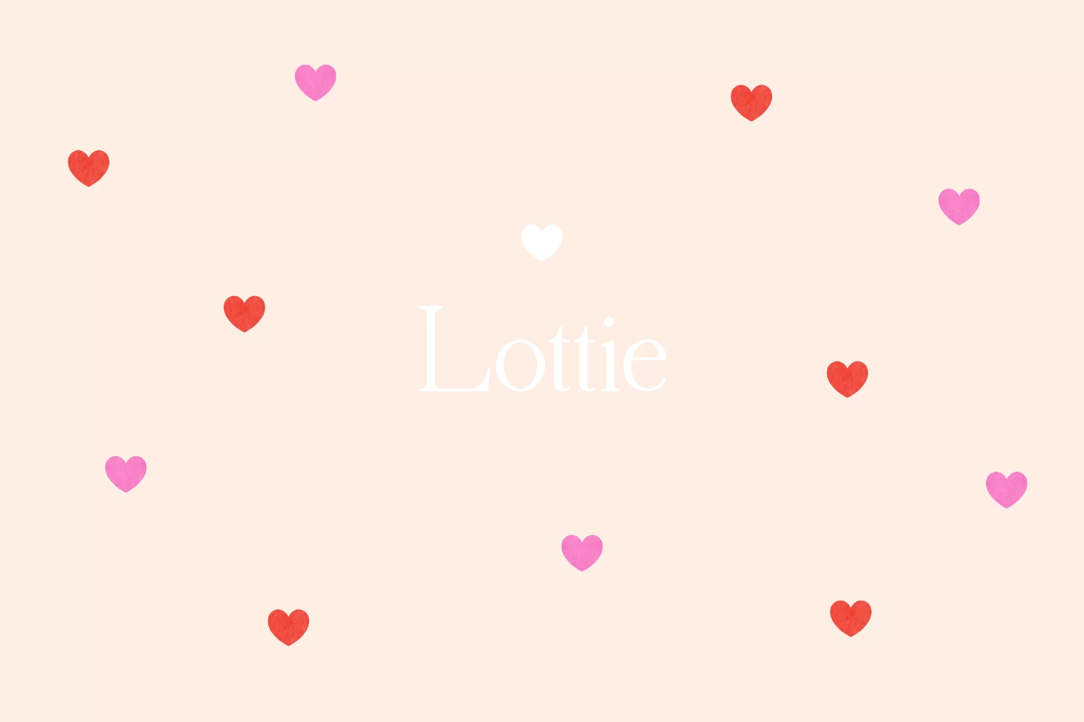 Schattig geboortekaartje met roze en rode hartjes. De naam is in goudfolie met een klein hartje in folie als detail. Je past het kaartje zelf naar wens aan in de editor.
