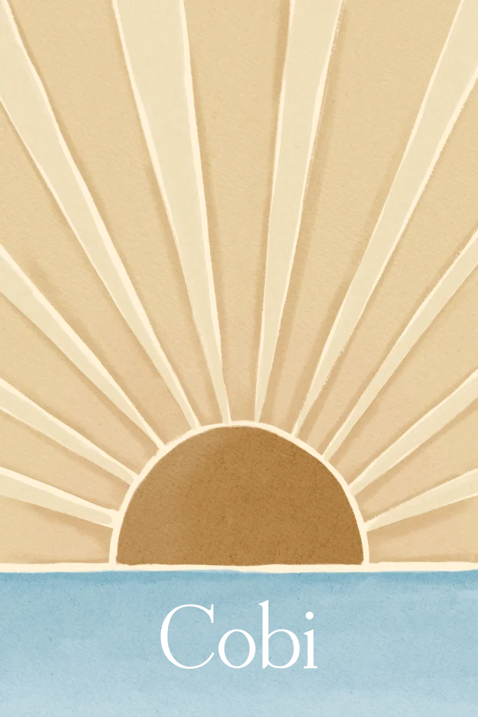 Uniek geboortekaartje met geschilderde zonnestralen in waterverf stijl in mooie tinten beige & blauw. De naam wordt gedrukt in goudfolie. De kleur folie is aan te passen in de editor.