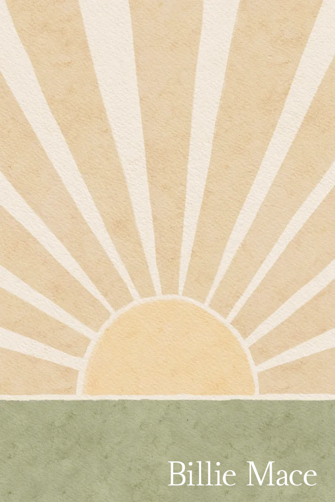 Uniek geboortekaartje met geschilderde zonnestralen in waterverf stijl in mooie beige & groentinten.