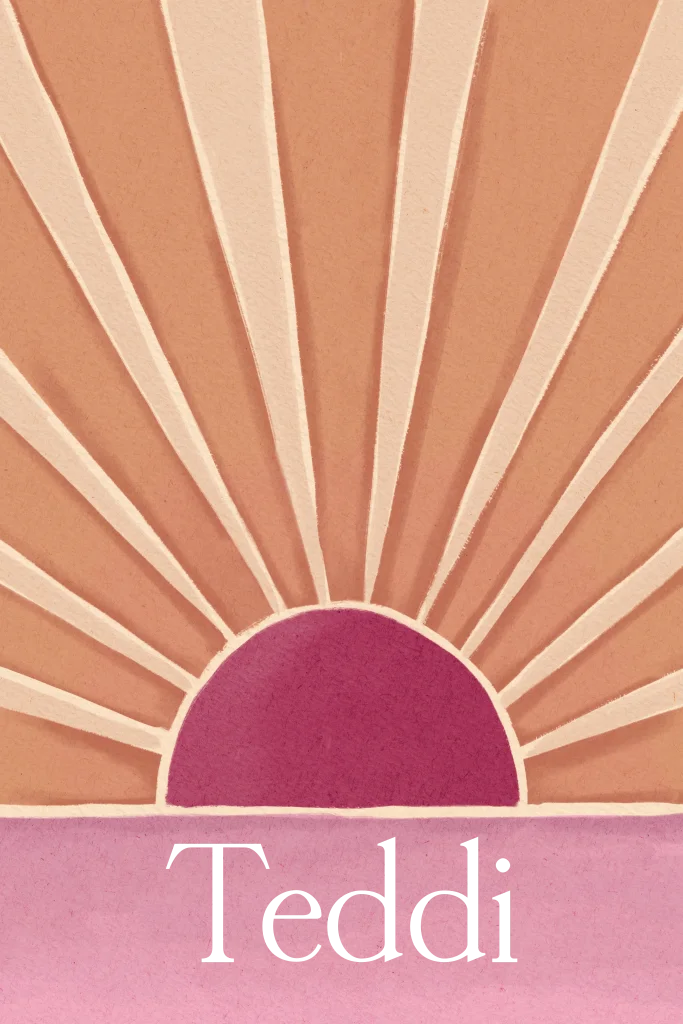 Uniek geboortekaartje met geschilderde zonnestralen in waterverf stijl in mooie terra & paarse tinten. De naam wordt gedrukt in goudfolie. De kleur folie is aan te passen in de editor.