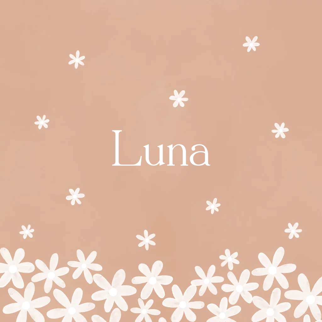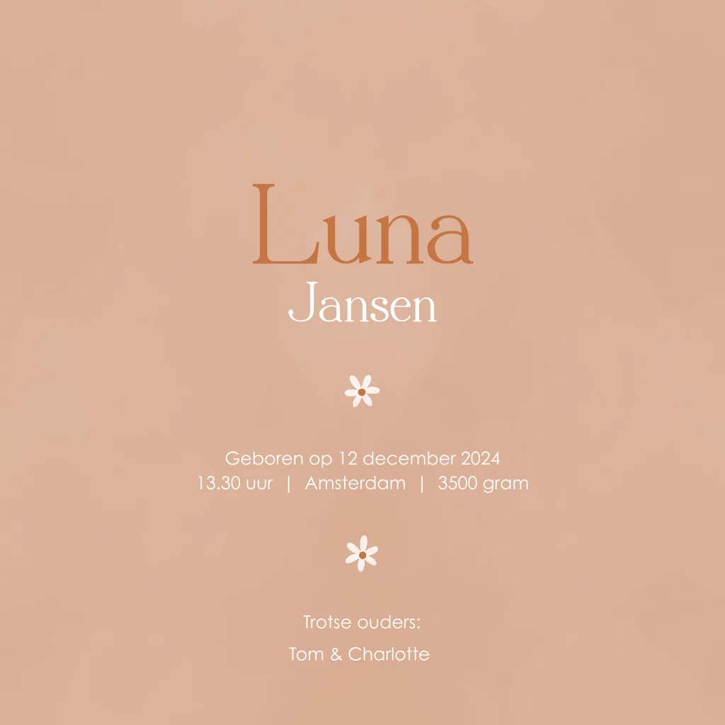 Schattig geboortekaartje met Madeliefjes. Van dit geboortekaartje met bloemen word je meteen vrolijk. De bloemetjes en de naam zijn afgewerkt in goudfolie.