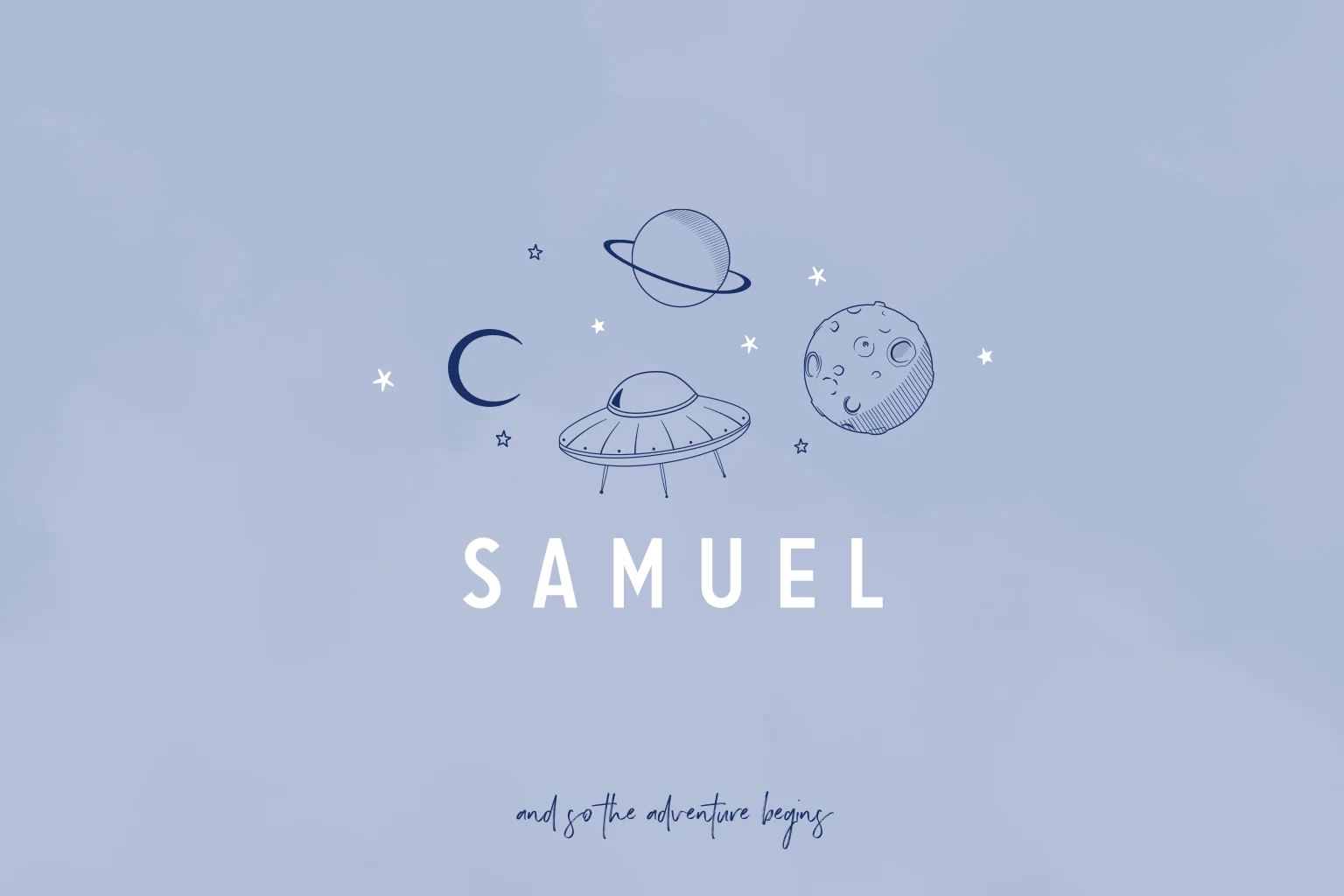 Space Thema Geboortekaartje Ufo Planeet Sterren Maan
