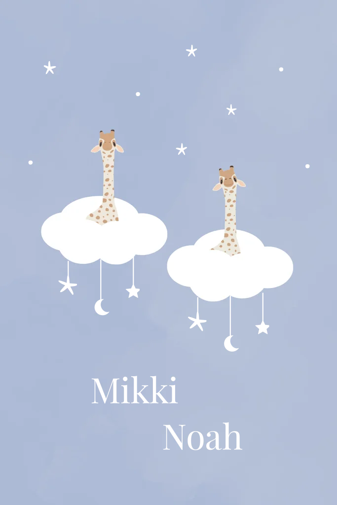 Tweeling Geboortekaartje Girafjes in de Wolken