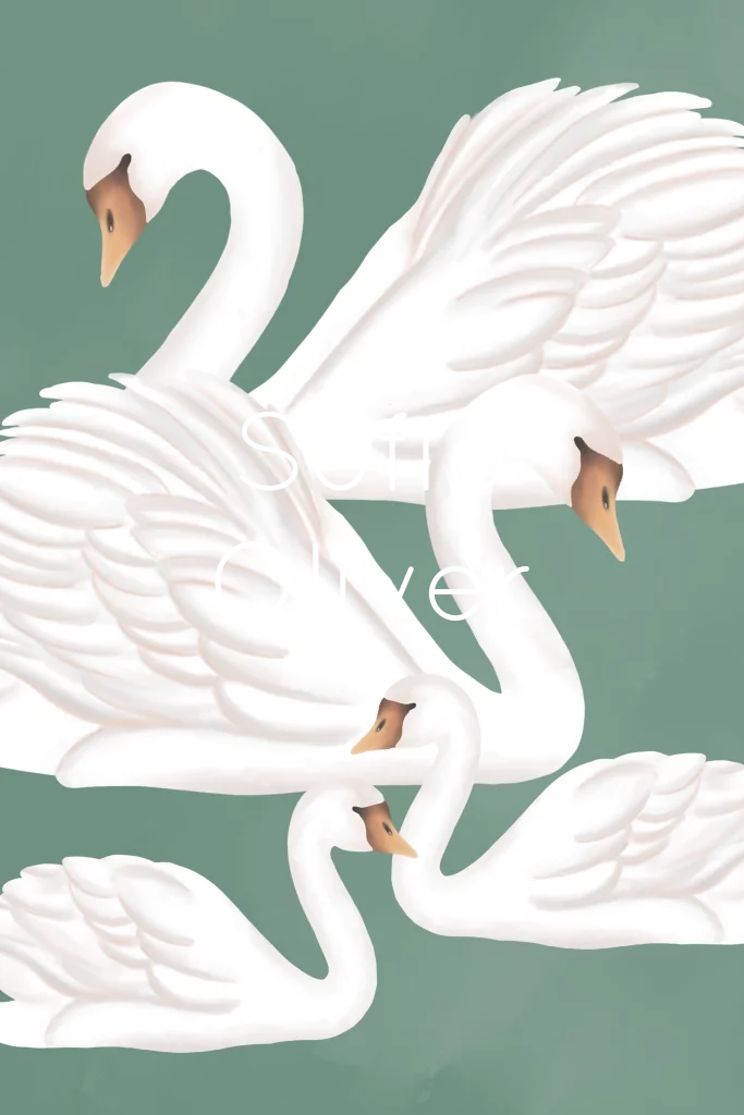 Tweeling Geboortekaartje Zwanenfamilie Groen