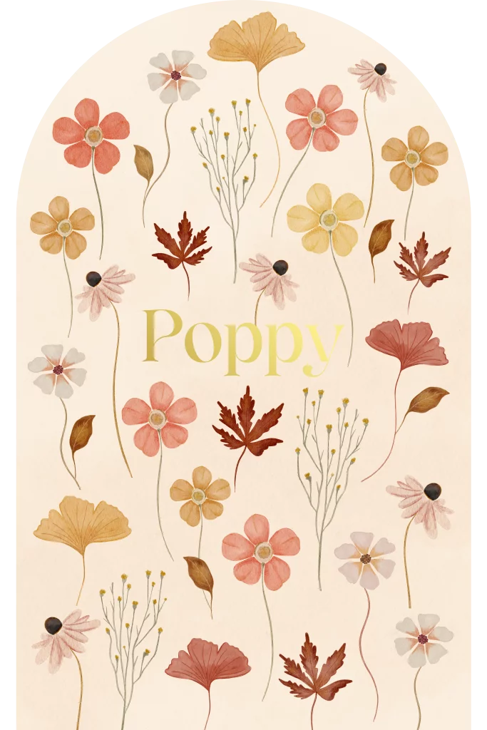 Geboortekaartje Boogvorm Bloemen en herfstbladeren in aquarel