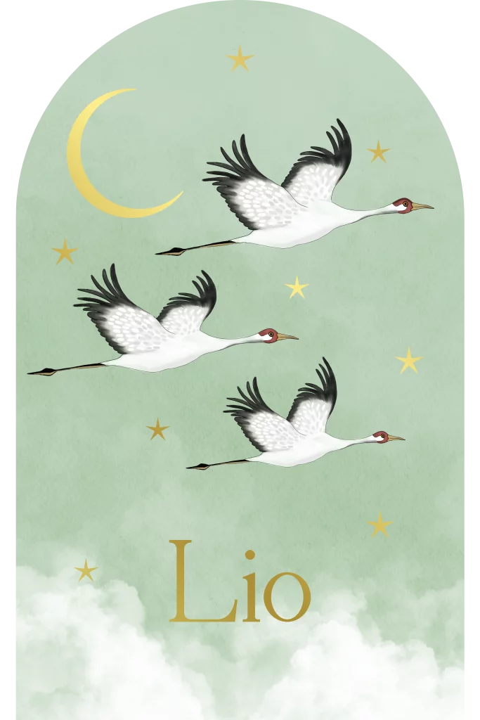 Geboortekaartje Boogvorm Kraanvogels Groen