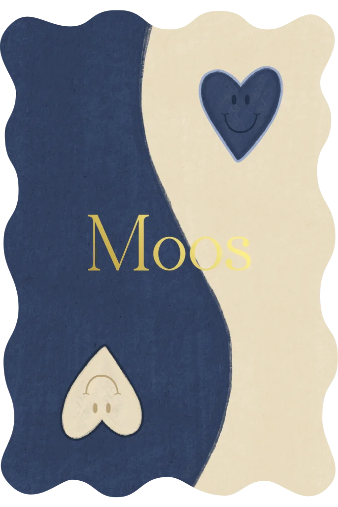 Een uniek geboortekaartje geïnspireerd op het Yin Yang symbool met twee smiley harten. Het geboortekaartje heeft mooie donkerblauwe en creme tinten wat het een stijlvol geboortekaartje voor jongens maakt. De smiley harten maken er een vrolijk geboortekaartje van.