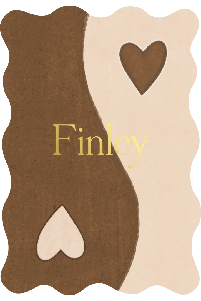Een uniek geboortekaartje geïnspireerd op het Yin Yang symbool met twee harten. Het geboortekaartje heeft mooie bruine en beige tinten en is leuk voor jongens en meisjes. De hartjes zijn afgewerkt met een klein hartje in goudfolie.