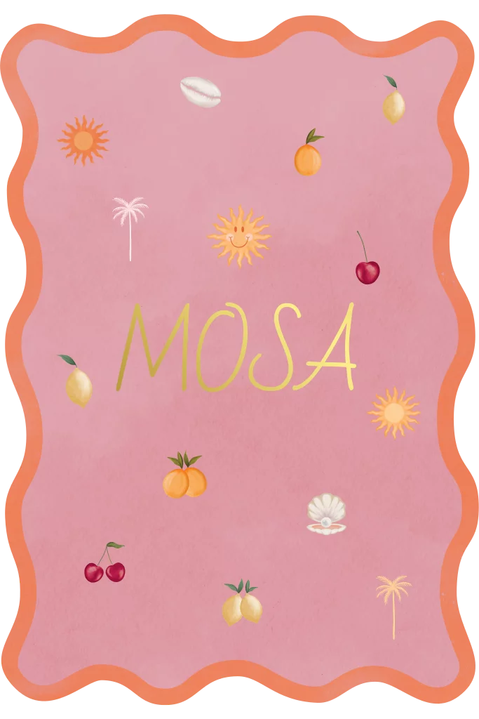 Zomers Geboortekaartje Golfvorm Zon Palmboom Fruit Schelp Roze Oranje